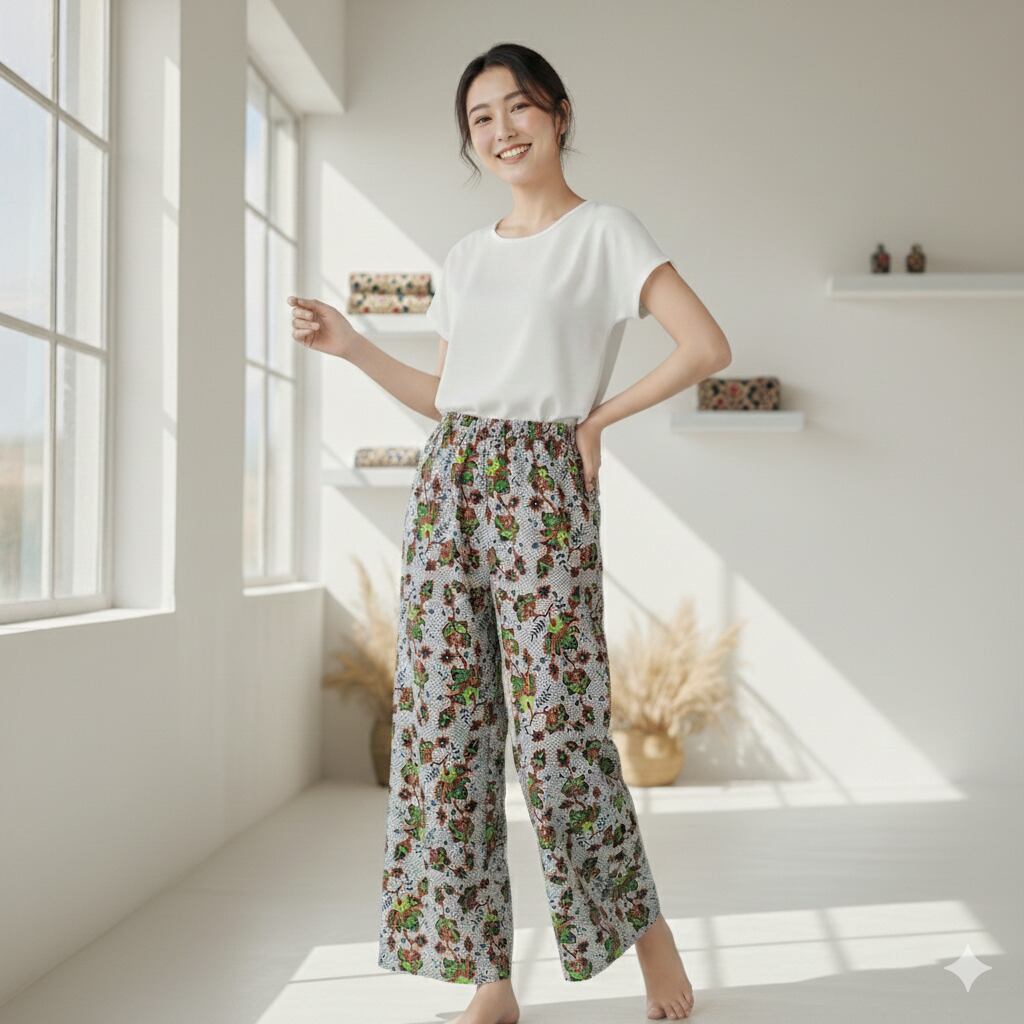 シンプルストレートパンツ(バティック風)