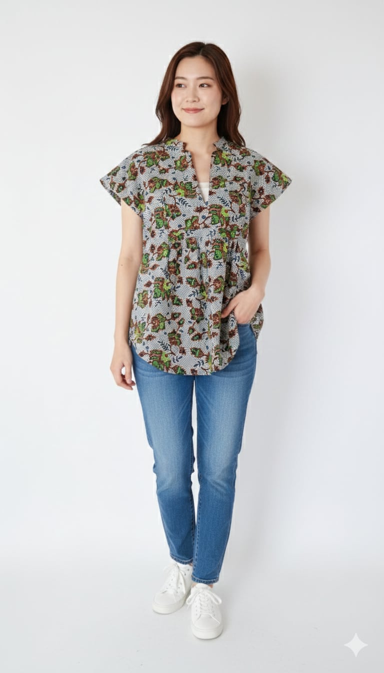 スキッパー ピンタックチュニック(バティック風)