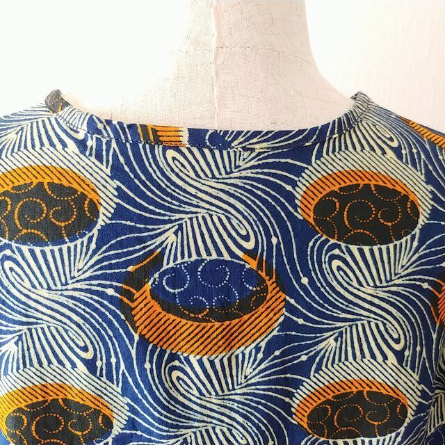 アフリカン前開きワンピース(ネイビー×オレンジ)
